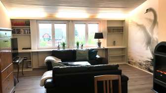 Die Gäste bewohnen die gemütliche Mansarden-Wohnung im Dachgeschoss mit separatem Eingang. Die Wohnung verfügt über einen hellen Wohnbereich mit Alpsteinblick, gratis WLAN, einem Fernseher mit Videogerät, einer offenen, gut ausgestatteten Küche mit Essbereich, zwei grosszügige Schlafzimmer für insgesamt 2 bis 4 Personen mit separatem Waschbecken und Dusche/WC.