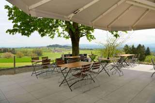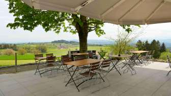 Das Hotel & Restaurant Nollen liegt an schönster Lage auf 733 Meter über Meer. Bei klarer Sicht geniessen die Gäste einen fantastischen Blick auf den Bodensee und die Alpen.