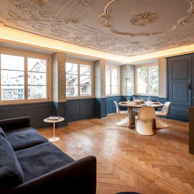 Nächtigen wie ein Gemeindeammann oder Tuchhändler im 18. Jahrhundert? Die fünf Ferienwohnungen Jacob 1808 in zwei denkmalgeschützten Häusern im Kern Bischofszell machen’s möglich und überraschen mit einer Interieur-Mischung aus modernen Designklassikern und knarrenden Holzdielen.