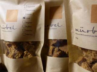 Mürbel besteht aus Milchcaramel und wird aus natürlichen und möglichst regionalen Zutaten ohne künstliche Zusatzstoffe hergestellt. Das Sortiment enthält acht verschiedene Geschmacksrichtungen: Alpensalz, Cacao, Ingwer, Whiskey, Baumnuss, Vanille, Kaffee und Chili.