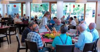 Das Restaurant ist mit seinem hellen, modernen Ambiente und reichhaltigen Angebot ein beliebter Treffpunkt für auswärtige Gäste, Bewohner und deren Angehörige. Die preiswerte, gutbürgerliche Küche zieht viele an. Das Restaurant verfügt über 70 Sitzplätze und im Sommer eine gemütliche Gartenterrasse.