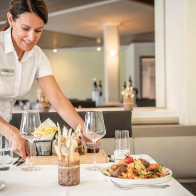 Das gepflegte Restaurant mit Gartensitzplatz (in den Sommermonaten) bietet täglich wechselnde Mittagsmenüs sowie innovative À-la-carte-Angebote. Ganz im Sinne von Pfarrer Sebastian Kneipp werden nebst den Klassikern des Hauses auch vollständig vegetarische Gerichte angeboten, die je nach persönlichem Geschmack individuell mit hochwertigem Fleisch oder Fisch aus der Region ergänzt werden können. Mit Liebe zum Detail richtet die Küchenmannschaft jeden Teller individuell an und die zuvorkommende Gastgebermentalität des Serviceteams rundet das Besuchserlebnis ab.