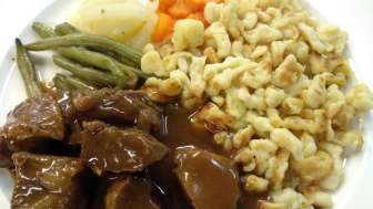 In der Speisekarte finden die Gäste gute regionale Gerichte, auch ein Käsefondue ist immer bereit.