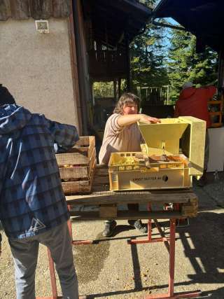 Im Mittelpunkt stehen das gemeinsame Arbeiten draussen, das Naturerlebnis und das direkte Erleben der Verarbeitung von der Frucht bis zum Getränk.