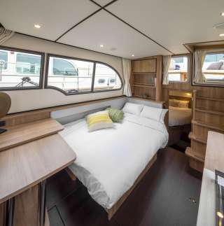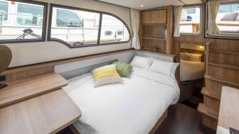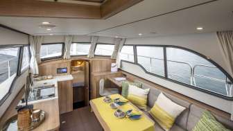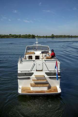 Das Hausboot Linssen 35 SL AC mit zwei luxuriösen Kabinen, hellem Salon und erhöhtem Cockpit ist eine aussergewöhnliche Unterkunft für Ferien auf dem Bodensee.