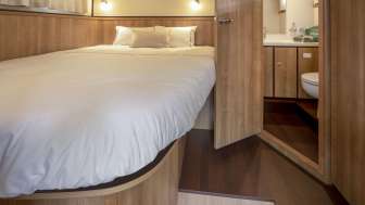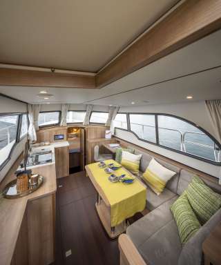 Beim Bootstyp AC mit Achterkabine und erhöhtem Führerstand steht den Gästen Raum für sechs Personen zur Verfügung. Zwei separate, luxuriöse Kabinen sind mit Doppelbett und eigener Dusche/WC ausgestattet und bieten gemütliche Schlafgelegenheiten für vier Personen. Ein grosszügiger Salon mit Küche und Esstisch lädt zum Verweilen ein. Im Salon können zwei weitere Personen übernachten. An Deck gibt es ein komfortables Sofa. Das Achterdeck lässt sich mit einem grossen Verdeck vollständig abschliessen und beheizen. Bei sonnigem Sommerwetter lässt es sich rundum öffnen.