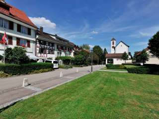 Die paritätische Kirche St. Bartholomäus befindet sich im Innern des spätrömischen Kastells Ad Fines und gehört zu den ältesten Kirchen im Thurgau.