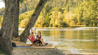 Das smarte Tiny House «hört» dem Gast die Wünsche von den Lippen ab und bietet so einiges: Den Zimmerschlüssel etwa, den gibt's aufs Handy. Möchte man Licht, braucht man es nur laut zu sagen. Wer Fernsehen will, macht das ganz modern über eine App auf dem hauseigenen Tablet, die persönliche Spotify-Liederliste kann über die Lautsprecher im Häuschen abgespielt werden und ein grosser Bildschirm am Kühlschrank wird zum Informationselement für touristische Auskünfte. Der Campingplatz liegt direkt am Rhein und ist idealer Ausgangsort für unzählige Wander- und Velotouren entlang des Wassers. Der Landgasthof überzeugt mit guter Küche und die attraktive Lage für Naturliebhaber lassen jeden Aufenthalt zu wunderbaren Ferien werden. An heissen Sommertagen lockt der campingeigene Badestrand zum Sprung ins kühle Nass.