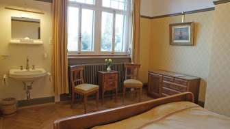 Der Charme der denkmalgeschützten Villa überzeugt: Nostalgische Möbel, Jugendstillavabos und antike Fliesen sorgen für das entsprechende Ambiente. Die Unterkunft in Aadorf ist für bis zu vier Personen ausgelegt, Babybett und Kinderbett sind zusätzlich vorhanden. Ein Park zum Ausruhen oder Entdecken (Kinderfreundlich), eine Bibliothek sowie ein Flipperkasten runden das Angebot ab. Mit hausgemachten Brötchen aus dem Holzofen startet man gut in den Tag. Die Region kann zu Fuss oder mit dem Velo entdeckt werden. Ein Besuch der umliegende Städte und Museen im Dreieck Winterthur-Frauenfeld-Wil lohnt sich ebenfalls. Auch der Rheinfall, der Bodensee oder das Toggenburg sind nur 30 Autominuten entfernt, 2 kostenlose Parkplätze sind vorhanden. Der Bahnhof ist nur 3 Gehminuten entfernt, mit guten ÖV-Verbindungen Richtung Zürich oder St. Gallen.